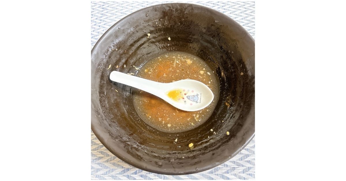 | スープ | ★★☆☆☆ (2点) | ・見た目はコッテリそうですが、想像以上にあっさりで、個人的には少し物足りず。醤油を少し追加しました。 |