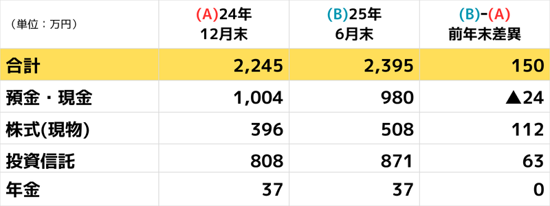 思い返せばコロナ禍を経て何か新しいことにチャレンジしなければと23年10月につみたてNISAでS&P500を3万円購入したことから始まり、そこからジュニアNISA、iDeco、新NISAとコツコツ続けてきた結果が今だと思います。