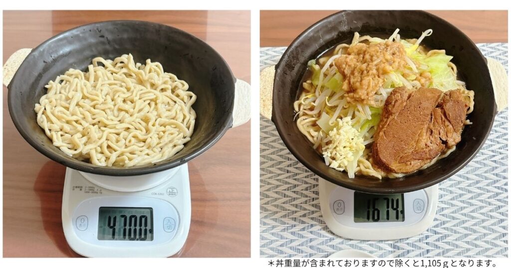 | 麺 | 約290g(実測値:約330g) |