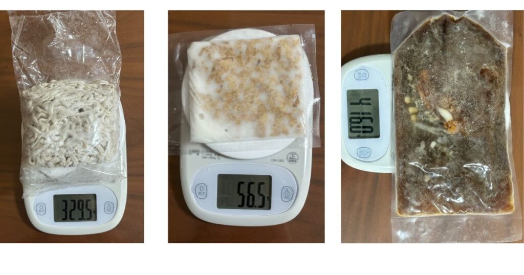 1個あたりのサイズはそこまで大きくないですが、まとめ買いするとなると我が家の食事頻度と冷凍庫サイズから4食〜5食がちょうど良いストック量であると考えてます。