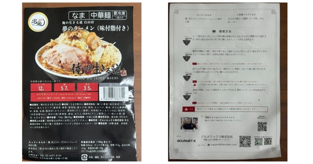 そこで本記事では、『俺の生きる道 白山店』の宅麺商品を実際に購入し、家計管理の視点で「店舗 vs 宅麺」のコスパを徹底比較。