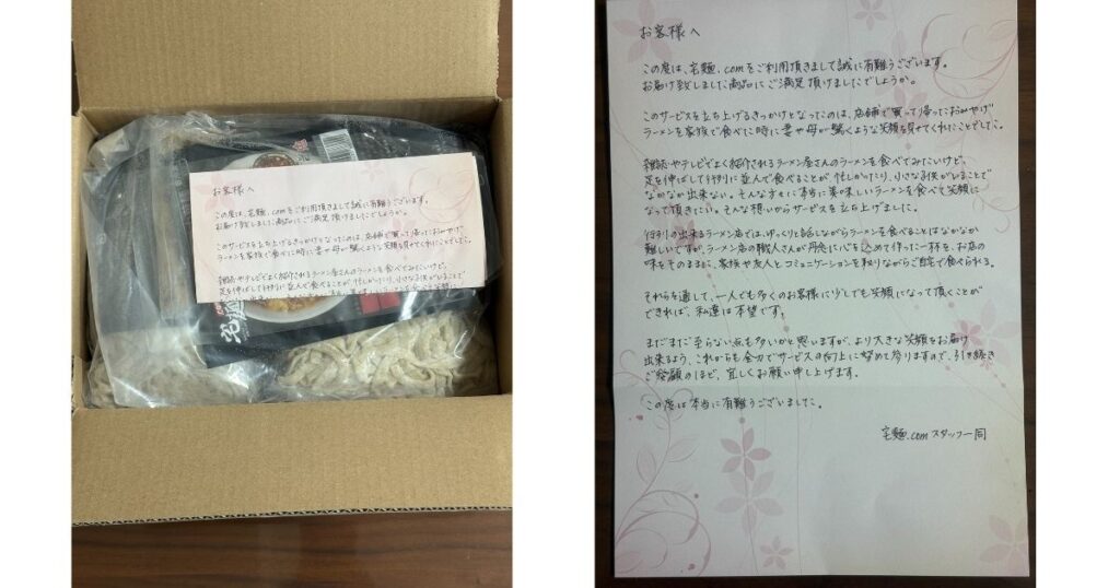 味の満足度は店舗体験に匹敵…どころか、“家でリラックスしながら食べられる”という付加価値を考えれば、体験としては宅麺のほうが上回るケースもありますね。