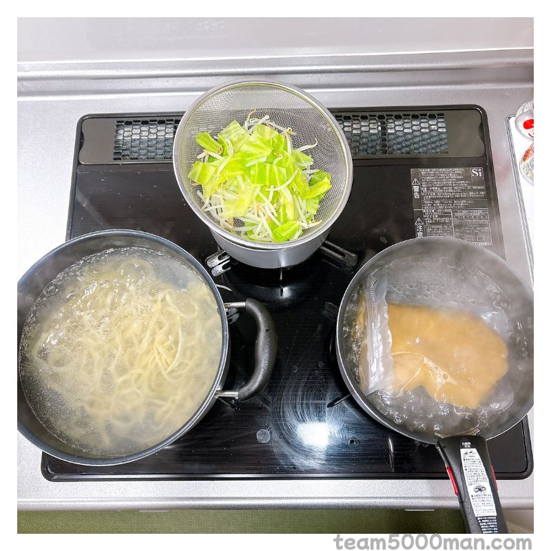 - 大鍋にたっぷりの湯を沸かす(麺270gには最低2L推奨)