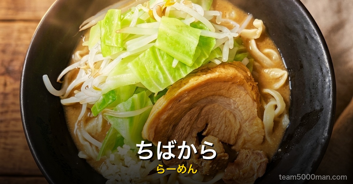 ちばからは千葉県市原市に拠点を置く二郎インスパイア系の名店です。「千葉から全国へ」の想いを込めた店名で、店主は30歳を超えてからラーメン二郎で修行を積み、2004年に開業しました。その特徴は以下の3点。