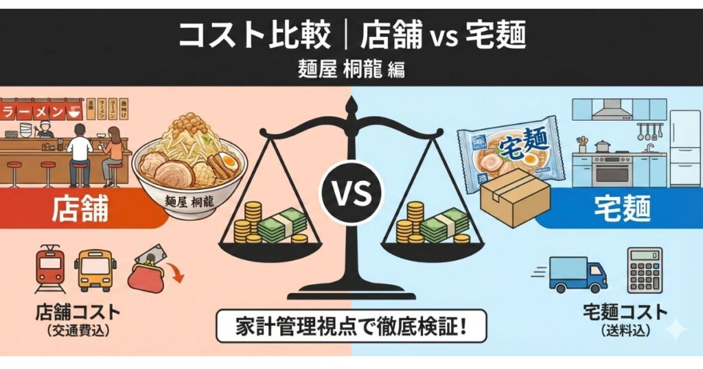 そこで本記事では、関東圏内屈指の人気店「麺屋桐龍 らーめん」の宅麺商品を実際に購入し、家計管理の視点で「店舗 vs 宅麺」のコスパを徹底比較。