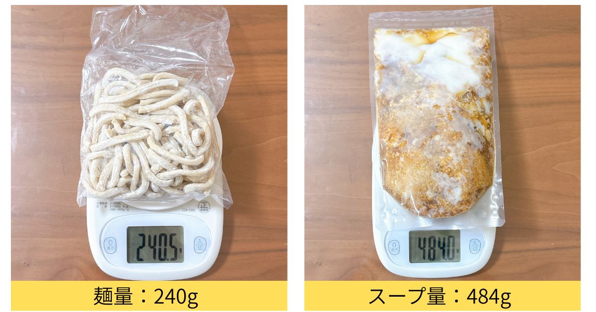 | 麺 | 約220g(実測値:約240g) |
