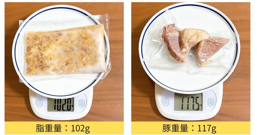| 脂 | 実測値:約102g |