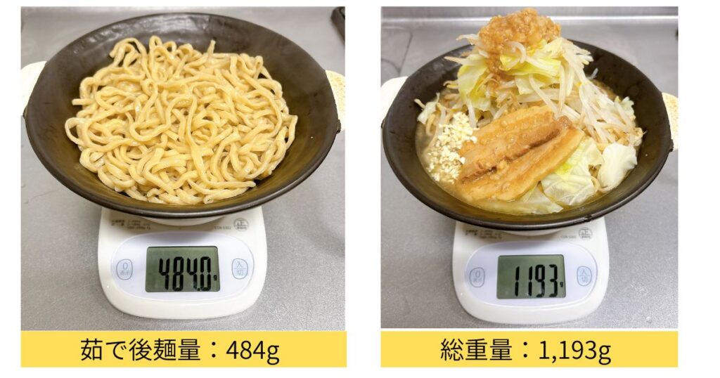 麺量は484gで夫婦でシェアして食べても満腹は間違いなし。