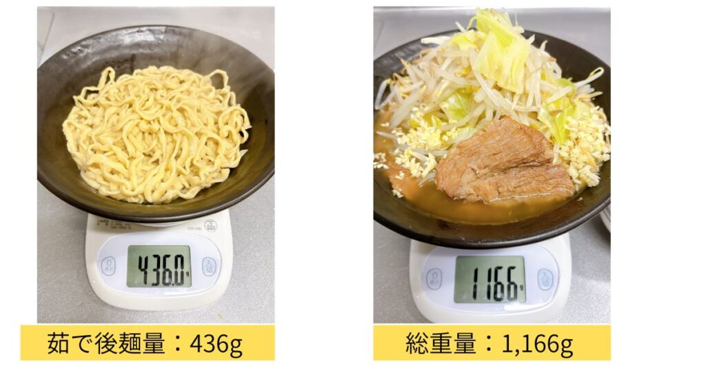 茹で後の麺量は436gで夫婦でシェアして食べても満腹は間違いなし!