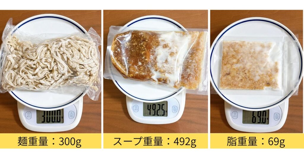 | 麺 | 約280g(実測値:約300g) |